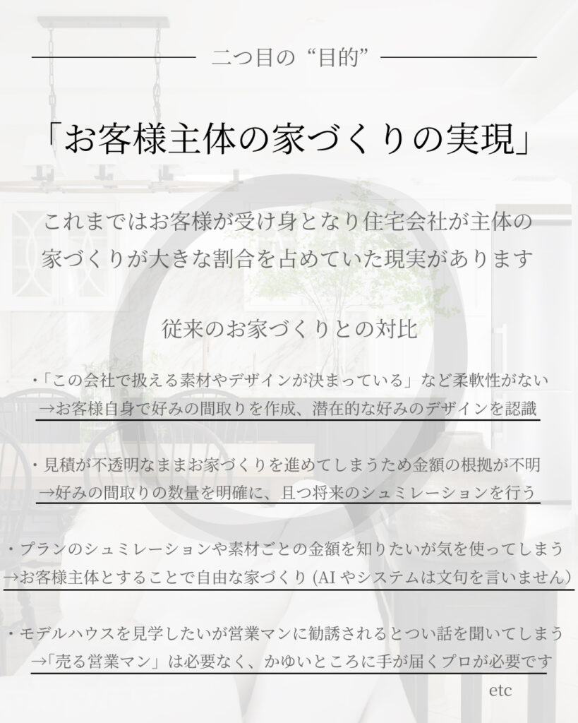 住宅会社は“仕上げるプロ”として関わるという、新しい仕組みをつくっています。