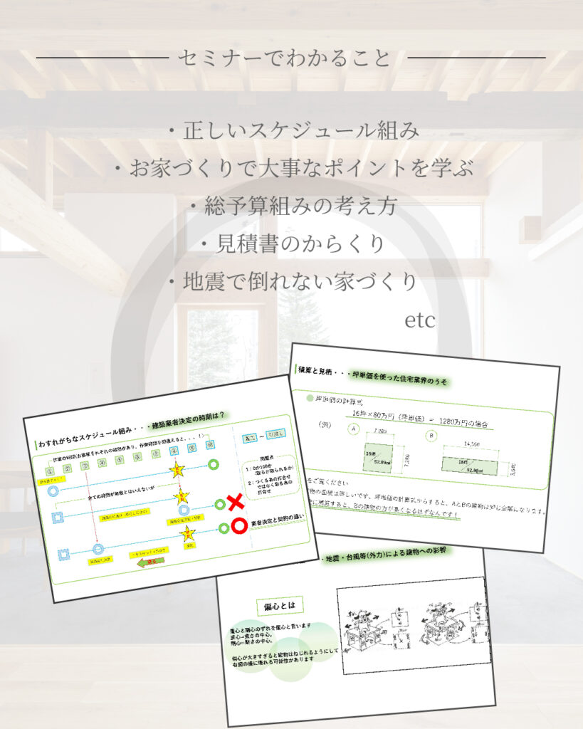 「お家づくりの真実」をお伝えする無料セミナーを開催しています。