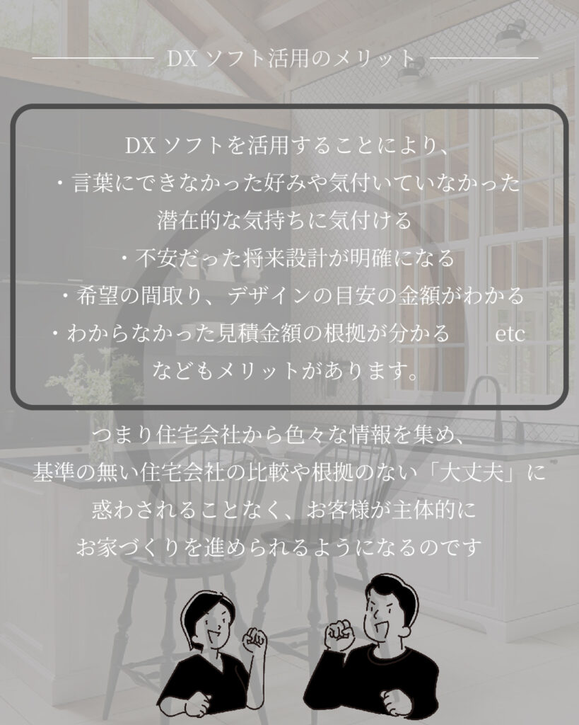 いくつかのDXソフト(デジタル家づくり支援ツール)を開発・導入しています。