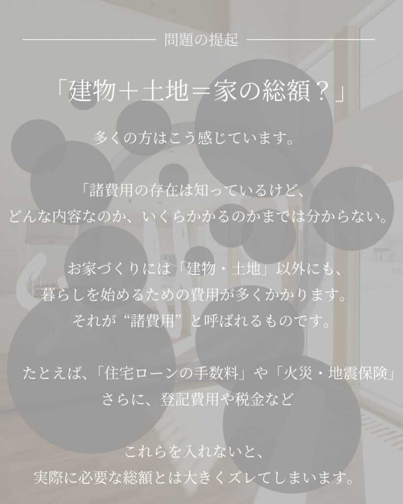 多くの方が「建物+土地=家の総額」と考えがちですが、