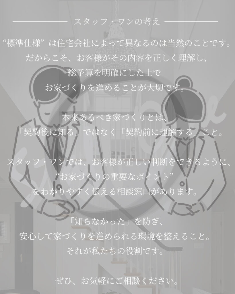 “契約後に知る”のではなく“契約前に理解する”家づくりを大切にしています。