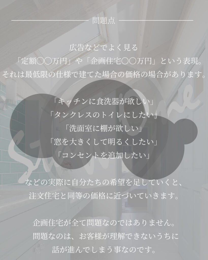 オプションを追加していくうちに注文住宅と変わらない総額になるケースもあります。