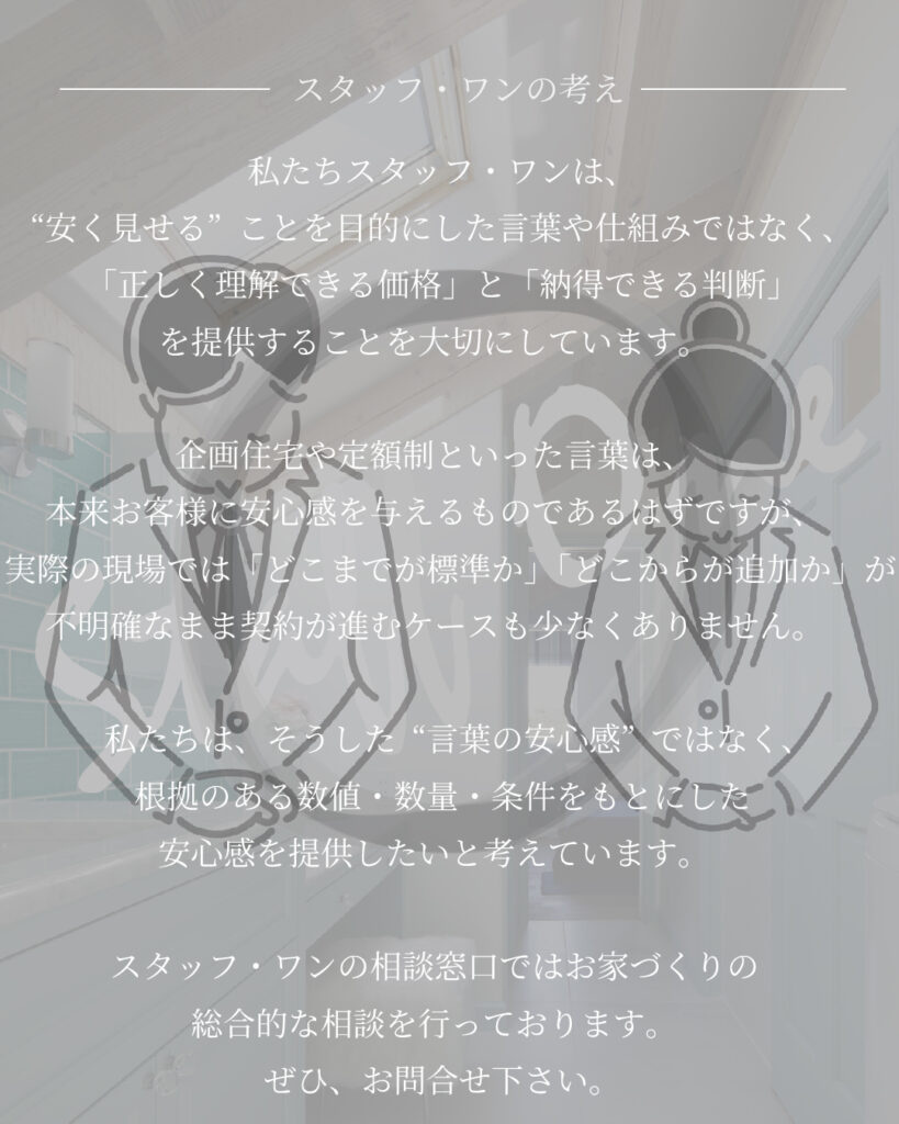 根拠ある金額と数量で安心できる家づくりをサポートしています。