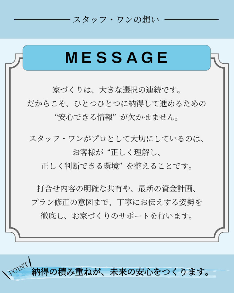 設備や間取りだけでなく「情報の共有」と「言葉の温度」をそろえることです。